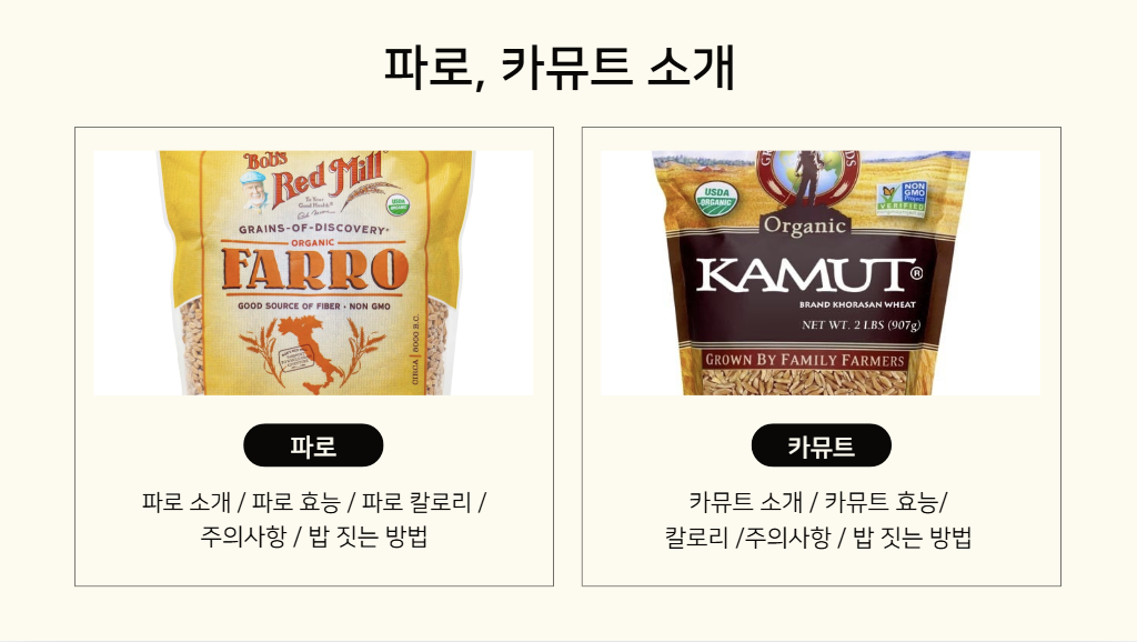 이번 포스팅에서는 쌀과 함께 즐길 수 있는 고대 곡물인 파로(Farro) 와 카뮤트(Kamut)에 대해 소개드리겠습니다.