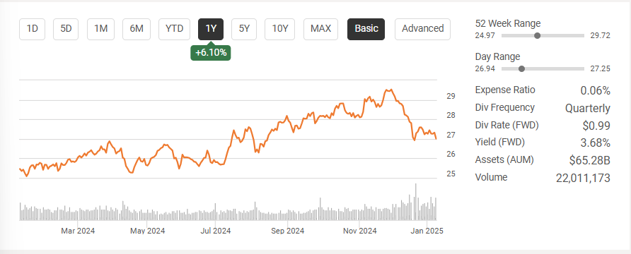 2011년에 출시된 이후, 낮은 비용과 견고한 배당 성장률로 배당 투자자들 사이에서 꾸준한 인기를 얻고 있습니다.